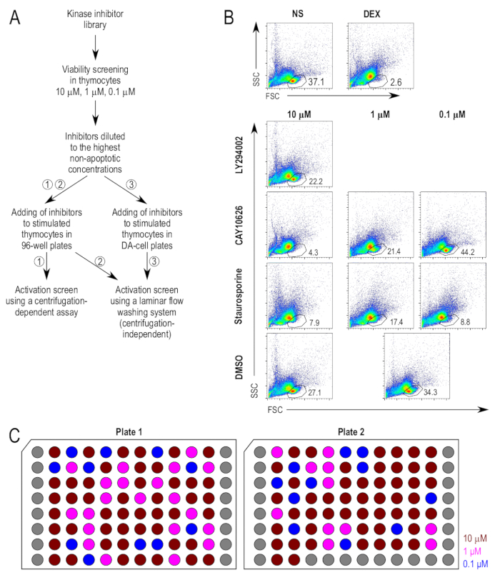 This paper uses a flow-cytometry-based assay to screen libraries of chemical inhibitors for the identification of inhibitors and their targets that influence T-cell receptor signaling. The methods described here can also be expanded for high-throughput screenings.